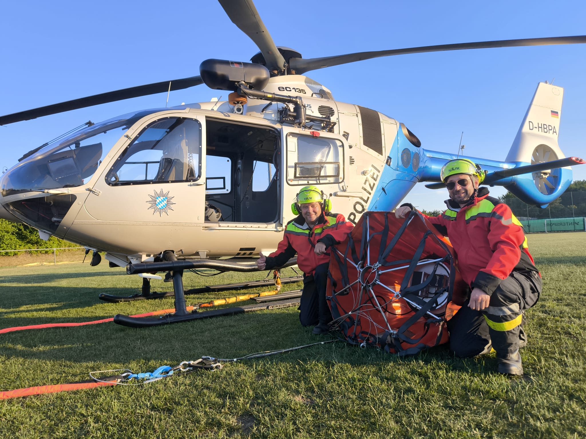 Die Flughelfer unterstützen die Piloten beim Einsatz von Löschwasser-Außenlastbehältern (Bambi-Bucket, SEMAT). Dazu gehört das Befüllen aus offenen Gewässern, mobilen Behältern oder über Schlauchleitungen sowie die Vorbereitung gezielter Abwürfe im Einsatzgebiet. - Transport von Einsatzkräften und Material