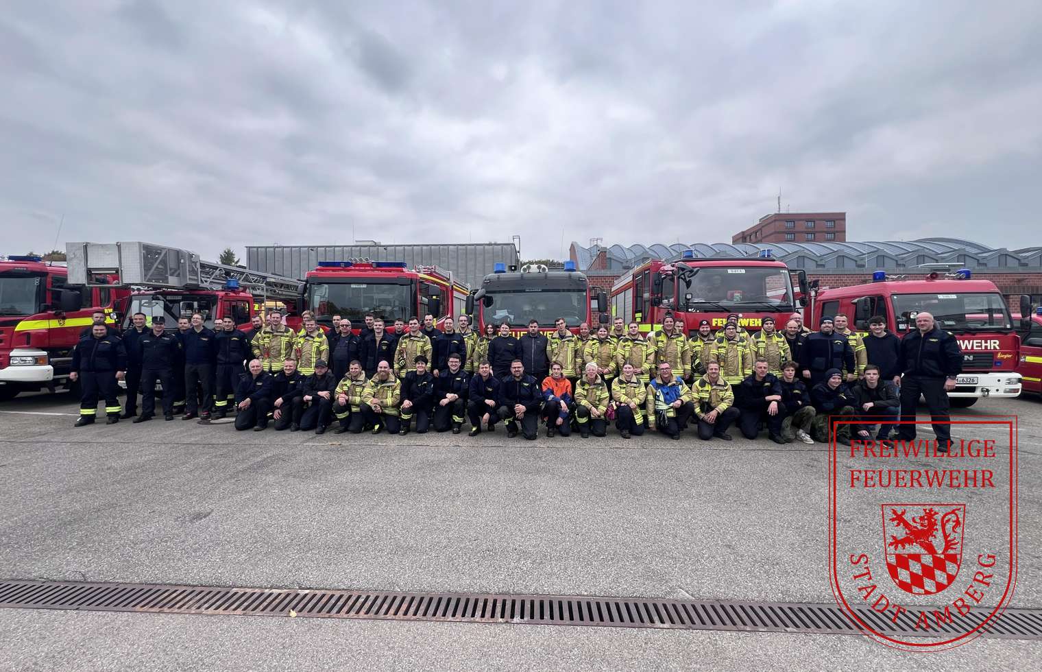Am Samstag, den 11. Oktober 2025, stand für rund 65 aktive Einsatzkräfte der Feuerwehren aus der Stadt Amberg und den Stadtteilwehren ein besonders lehrreicher Ausbildungstag auf dem Programm. Mit einer beeindruckenden Fahrzeugflotte – darunter mehrere Mannschaftstransportwagen, der Einsatzleitwagen der Unterstützungsgruppe Örtliche Einsatzleitung, das LF 20, die Drehleiter DLK 18/12, der Rüstwagen, der Gerätewagen Logistik, das LF-KatS aus Raigering, das TSF-W aus Gailoh sowie das MLF aus Karmensölden – ging es zur Feuerwehrschule nach Regensburg.