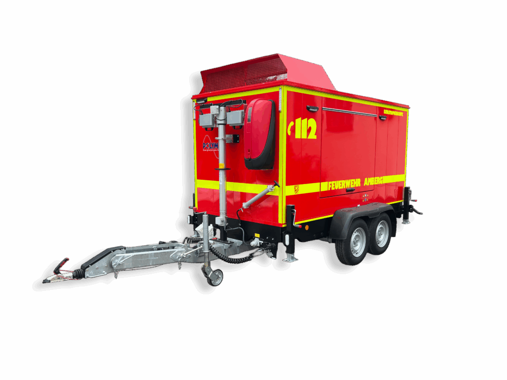 | Beladung: | Lichtmast 2x LED-Scheinwerfer Drehstromkabeltrommel 32 A Drehstromkabeltrommel 16 A |